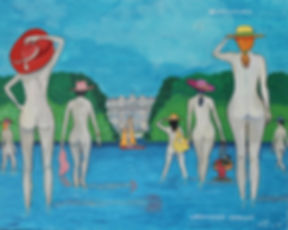 Hans malte Wortspiele, Satire, Ironie, Heiteres und Hintergründiges. Glamourös und schwungvoll, mit kräftigen Acryl-Farben auf Leinen.